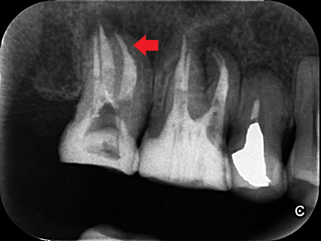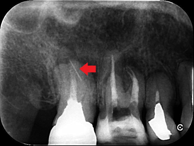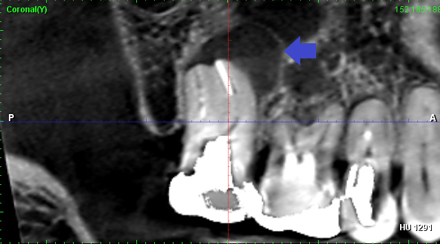 破折ファイルがあり、根の先に膿がみられる場合は破折ファイル除去が必要になります。破折フィル除去には歯科用顕微鏡とCTスキャンがあると、安全にかつ確実な除去をしやすくなります。