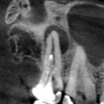 下顎第二小臼歯の初診時の冠状断のCT画像です。