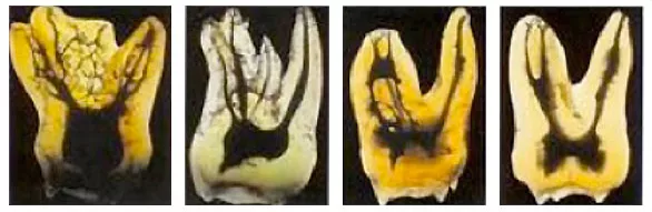 実際に「根管」の画像をご覧頂きましょう。歯の中にある黒い筋が根管です。