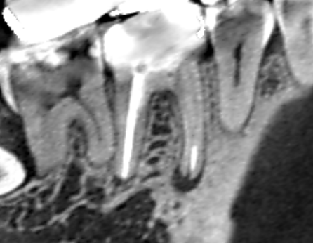 上顎第一大臼歯の根の先と根の分岐部の両方に膿がみられたケースです。他の歯の根管治療でCTを撮影し…